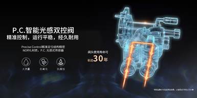 其一,P.C.光感双控阀。BWS - 918中央软水机采用第五代P.C.光感双控阀,相比传统阀头,具有大流量、抗氧化、抗腐蚀的特点,阀头使用寿命可长达30年。它能光感判定阀体内部水路切换位置是否准确,精准控制逆流再生的每一个步骤,让软水机运行更平稳。