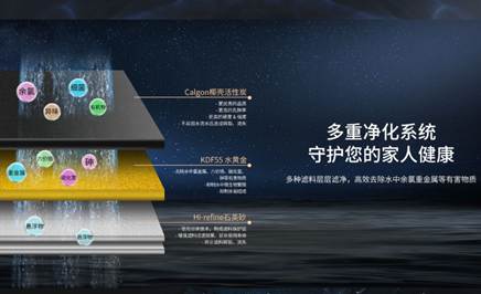 第二重:KDF55水黄金,可以去除水中重金属、六价铬、硫化氢、砷等。